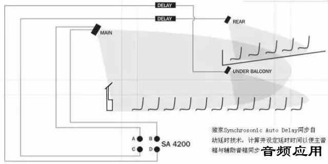 为了避免这种现象的发生,就需要在补声音箱的功放之前添加音频延时器,将b路信号作相应的延时处理,从而达到提高声音清晰度的效果。这也就是音频延时器最为常见的一种用法。