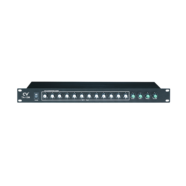 十二路混音器产品功能:1,优秀的前置运放确保高音质输出。2,先进的数码混响调制功能。3, 高低音调节功能。4,十二路麦克风输入,超过十二支麦克风时可叠加使用。5, 十二路麦克风可单独调节,能兼用多种类型,多种指标的麦克风。6, 单/双声道输出,可随意选择。7 可等同“十二路调音台”使用。