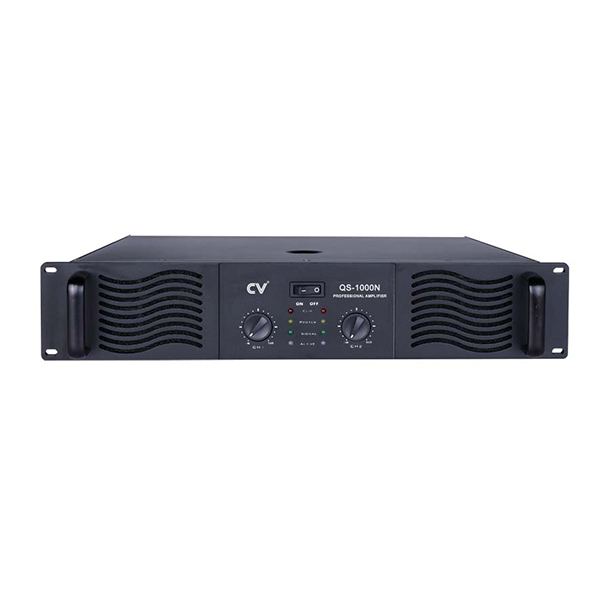功放型号 QS-1000N 立体声功率8Ω4 1000Wx2 立体声功率4Ω 1500Wx2 桥接8Ω 2600W 频率响应 20Hz-20KHz+0/-0.5dB 谐波失真 <0.05% 阻尼系数 >400 电压增益 38dB 灵敏度 1V 信噪比 >103dB 输入接口 XLR&14TRS 输入电压 220V 净尺寸(宽*深*高)MM 483×440×90 重量(KG) 20