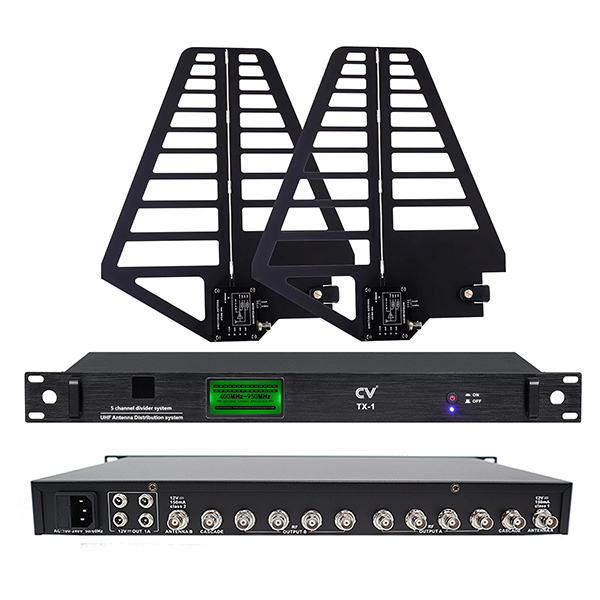 产品特点:TX-1天线分配器是一款有源宽频带UHF天线分配器,使用一对RF信号天线,能够连接最多5台无线接收机,或者使用级联方式可级联最多8台天线分配器供32套无线接收机使用,并通过BNC线给有源天线供电。超宽的工作频段450-970MHZ。 RF信号过载指示和可调整的射频信号电平设置保证了即便使用不同长度和不同类型线缆,也能够具有最大工作距离。12dB可调的射频信号电平,用于优化使用不同线缆的接收效率;链接输出,可链接8台无线接收机组成大型系统;RF电平过载LED,可及时监察射频信号的质量;高清LCD显示。