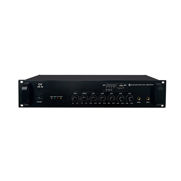 产品特点:内置蓝牙MP3解码播放器与FM收音机播放器,可自由切换播放模式;支持U盘及SD卡存储歌曲,更换歌曲方便;配带遥控,方便操作;采用先进高效功率放大电路,设有2路话筒输入,3路线路输入,1路辅助输出,每路输入音量可独立控制,带有高低音音量调节;话筒1设为最高优先功能,自动抑制其他输入信号;设备设有异常工作保护警告功能,当输入信号过大、负载过重、温度过高、线路电路时,对应的指示灯提示,有极高的可靠性;铝合金面板,美观实用。